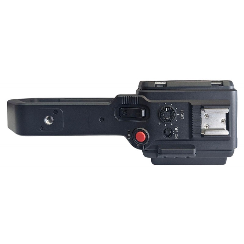 Rukojeť neboli madlo (ručka) se usazuje na horní díl přístroje pomocí patentovaného konektoru - inteligentní elektrické zasouvací botičky - a je zajištěno šroubem s rýhovaným obvodem, pro snadnou manipulaci prsty. Zvukové XLR-vstupy doplňuje ovládání hlasitosti, volbou vstupů mikrofon/linka a fantomovým napájením +48 V, díky čemuž lze k záznamu přidat 2 zvukové kanály. Do držáku mikrofonu na pravé horní straně lze upevnit standardní mikrofon typu SHOTGUN (nejčastěji monofonní směrový mikrofon).