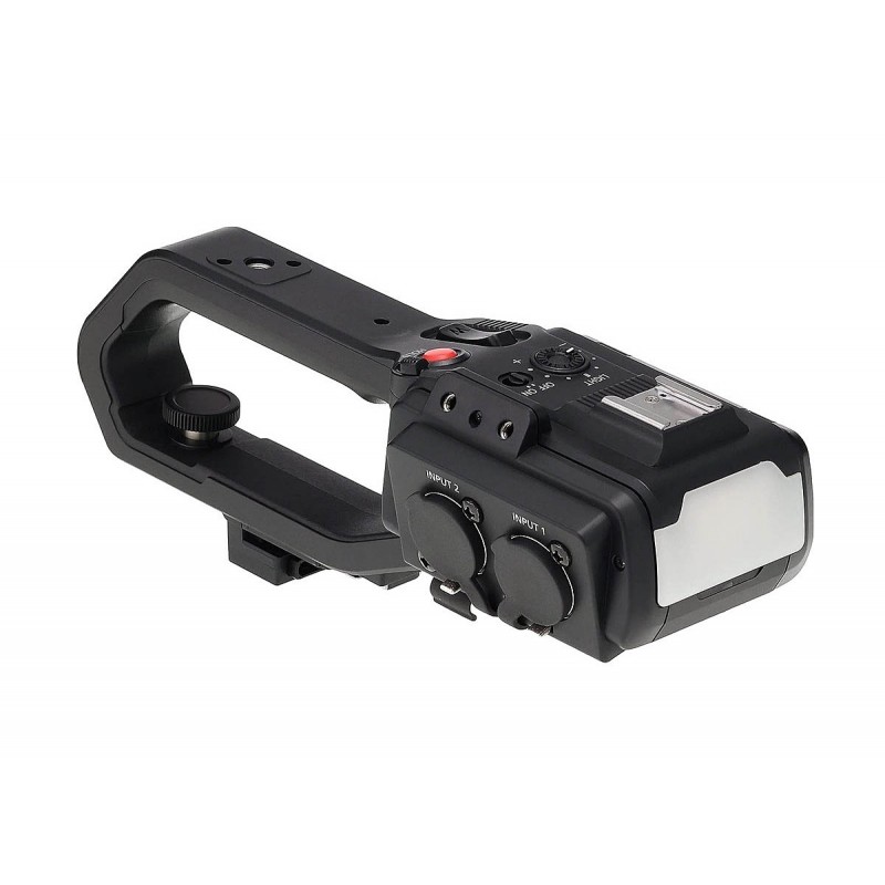 Rukojeť neboli madlo (ručka) se usazuje na horní díl přístroje pomocí patentovaného konektoru - inteligentní elektrické zasouvací botičky - a je zajištěno šroubem s rýhovaným obvodem, pro snadnou manipulaci prsty. Zvukové XLR-vstupy doplňuje ovládání hlasitosti, volbou vstupů mikrofon/linka a fantomovým napájením +48 V, díky čemuž lze k záznamu přidat 2 zvukové kanály. Do držáku mikrofonu na pravé horní straně lze upevnit standardní mikrofon typu SHOTGUN (nejčastěji monofonní směrový mikrofon).