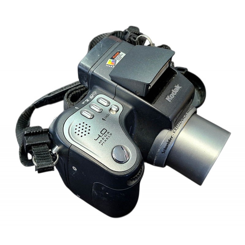Velmi pěkný RETRO-fotoaparát byl v maloobchodech v roce 2004. Má 4MPx a elektronický hledáček. Technická data níže. Náš kus je s krabicí a kompletními doplňky...