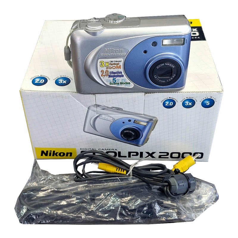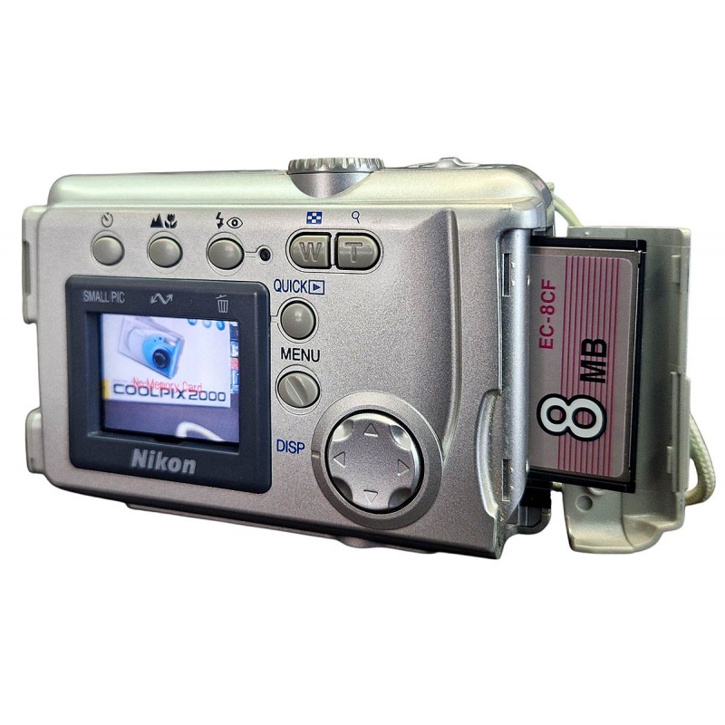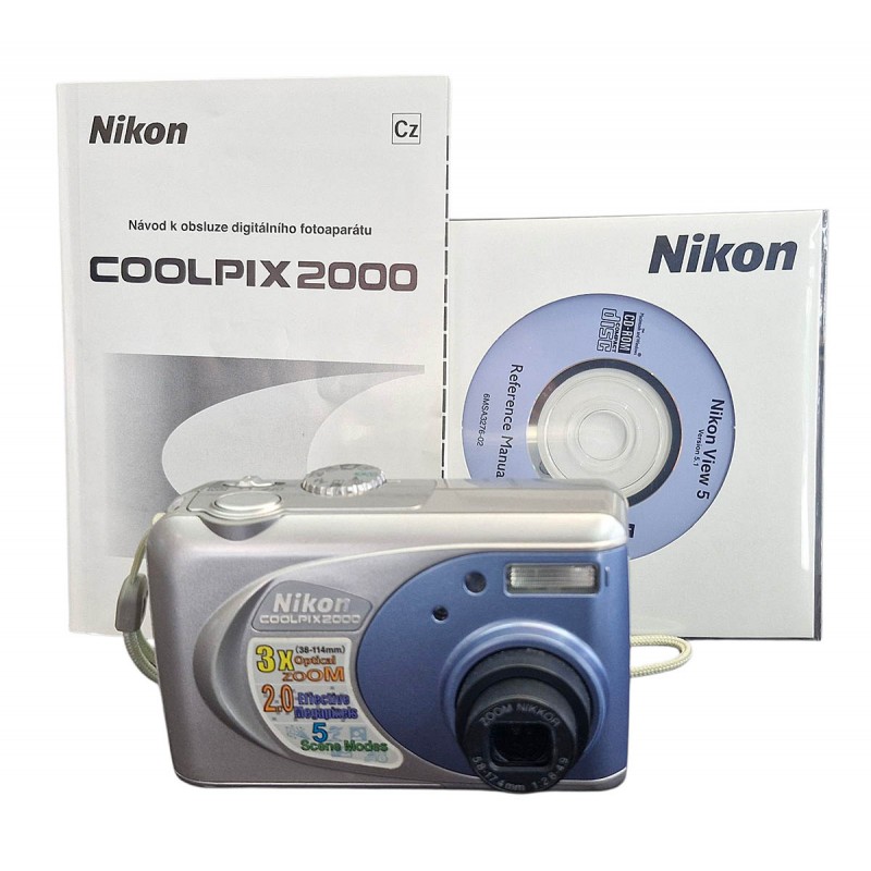 BAZAR. Přístroj ve stavu JAKO NOVÝ, včetně kompletního balení a 2ks baterií AA. Krásný digitální Retro fotoaparát NIKON COOLPIX 2000 má CCD 2MPx a paměťovou kartu CF. PLŇĚ FUNKČNÍ s garancí na vyzkoušení. Maloobchodně nabízen od roku 2003...