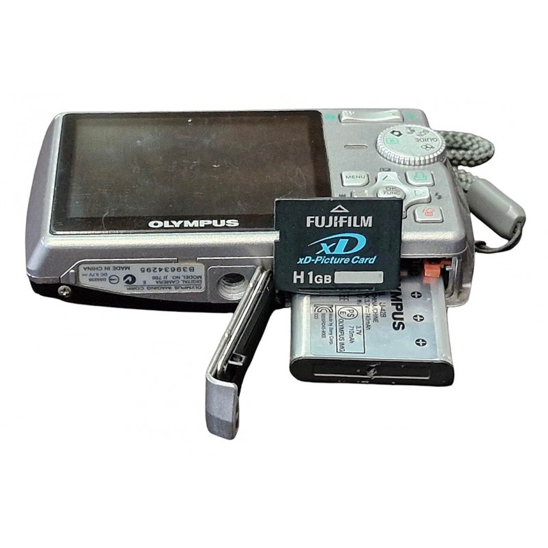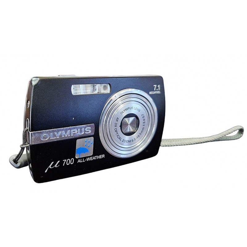 Kompaktní fotoaparát OLYMPUS MJU700 byl aktivním maloobchodním modelem od roku 2006. Paměťovým médiem je xD-karta, v přístroji vložena kapacita 1GB (přes 300 snímků). Dostupnou je na trhu i redukce xD na microSD kartu, čímž lze tíže sehnatelné xD karty nahradit. Přístroj s akumulátorem, nabíječkou a pouzdrem pro tento model.