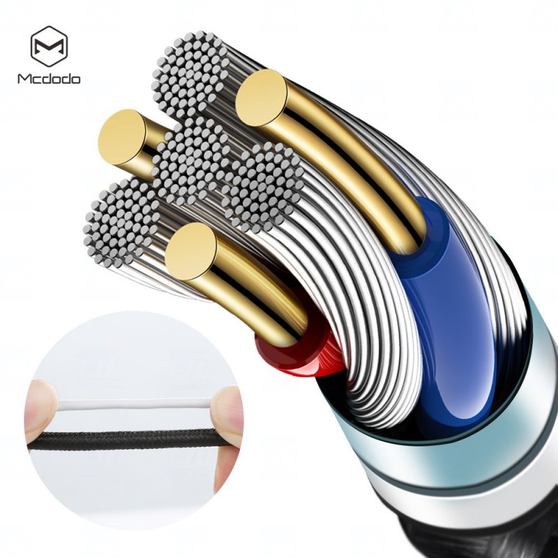 Mcdodo Ecellence Power delivery USB C kabel Vás oslní také svým zpracováním. Celá délka kabelu je opletena nylonovým vláknem, které chrání kabel před poškozením a nadměrným ohýbáním nebo lámáním. Pouzdra konektorů jsou z leštěné slitiny zinku, která působí velmi bytelným dojmem.